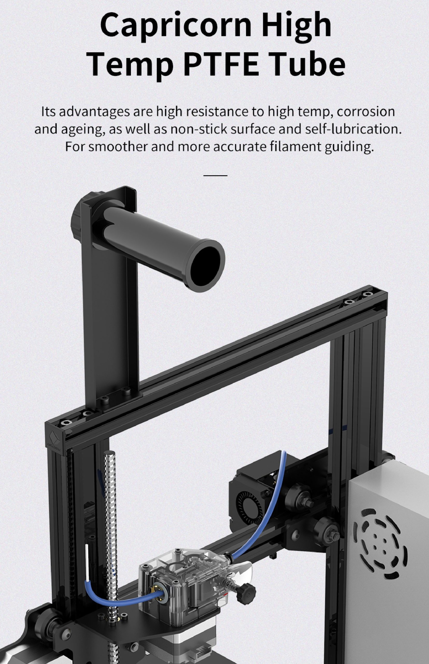 Трубки Capricorn для 3D-принтерів є найкращими у своєму класі та забезпечують чудову якість друку. Синя тефлонова трубка Capricorn Bowden PTFE має жорсткі допуски діаметра (1,9 мм ± 0,05 мм), що скорочує зайвий простір і запобігає втраті стійкості філамента всередині трубки. Наявність такого типу трубки покращує характеристики екструзії завдяки меншому ковзанню пластику та забезпечує можливість друку гнучкими пластиками.